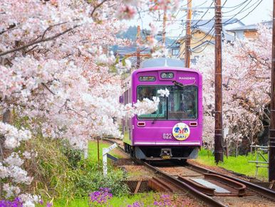 Ride the Sagano Romantic Train, a scenic railway through Kyoto’s Arashiyama mountains offering breathtaking views of rivers, forests, and cherry blossoms in spring.